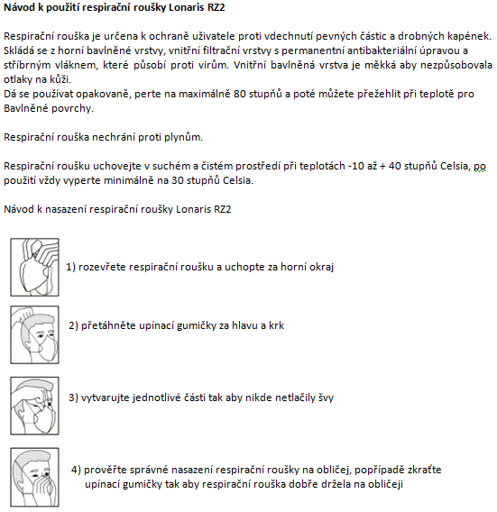 Respirační rouška LONARIS RZ2 právě prochází certifikací podle platné normy
